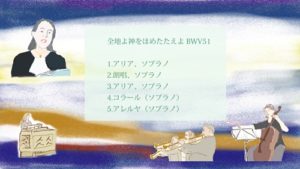 3 アリア、アリオーソとコラール 4 合唱 父なる神と御子と聖霊に 誉れあれ |