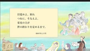 ノイマイスターの歌詞では、救い主の到来を待望する視点が、第4曲の黙示録の引用を境にして、キリスト教会という共同体から、キリスト者個人の心へと転換している。(バッハCD全集解説) |